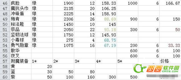 备注:以上数据不包含蓝色装备以上,因为蓝色装备由碎片合成,购买需要巨大数量的金币,太亏了