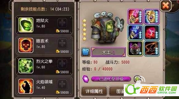地狱火:术士召唤陨石从天而降,被砸中的敌人受到魔法伤害和短暂眩晕,陨石落地后变为威力巨大的地狱火为术士战斗。