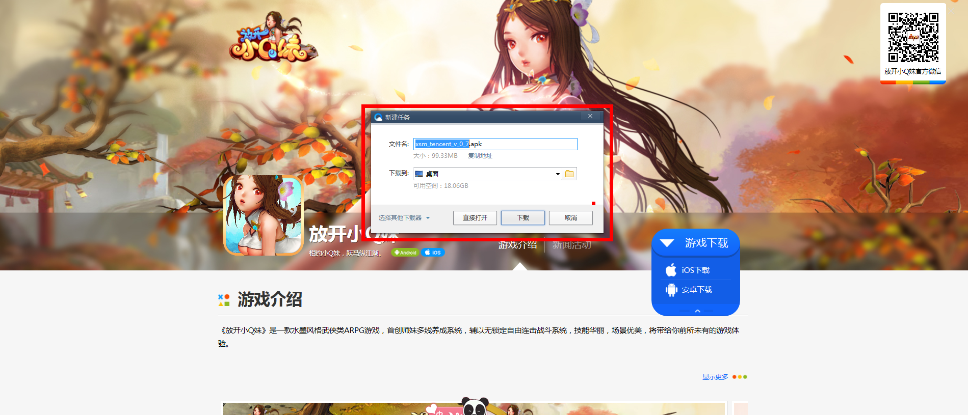 H. 成功安装以后,点击手机上的“放开小Q妹”图标即可开始游戏啦!(5月9日上午10点开服哦!)