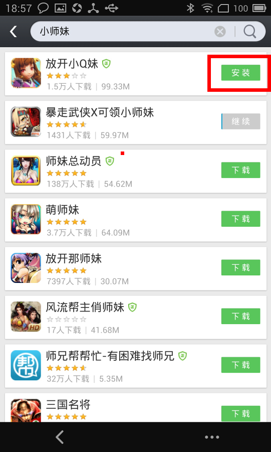 A. 在应用宝上点击搜索栏,输入“放开小Q妹”