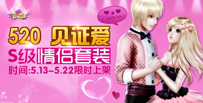 一年一度的表白日要来啦,全民炫舞作为一款情侣必备的游戏也上线了520专属活动,活动期间情侣玩家可以购买到S级情侣套装哦,注意是限时的哈!