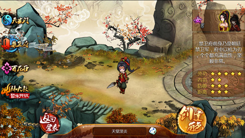 职业特点:优点:禁卫府主修外功,以攻击力强大而著称,防御力较高,加上长枪特性,攻击距离比较远,适合单挑。缺点:内功修为很低,在群战的时候自身的属性缺点会对战斗有所抑制。