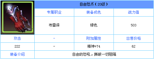 ![]() | 自由怒爪 | 20级 | 自由的怒吼,撕破一切阻隔。 |
