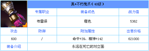 ![]() | 不朽鬼爪 | 40级 | 永远在死亡的对立面 |