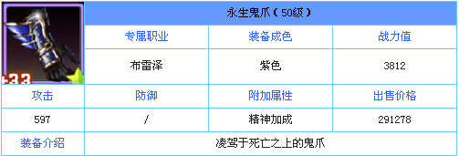 ![]() | 永生鬼爪 | 50级 | 凌驾于死亡之上的鬼爪。 |