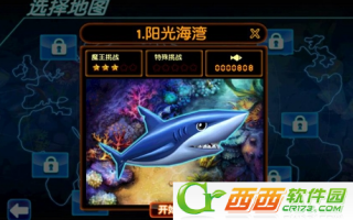 进入游戏之后会有一个渔场(关卡)的选择画面,基本的设定想必玩过类似休闲游戏的童鞋都不会感到太陌生,依然是采用很传统的解锁模式来推进游戏的,不过在选关的时候可以看到一些关卡的信息以及会出现的Boss,这些设定对于观察性比较敏锐的童鞋帮助还是相当大的。