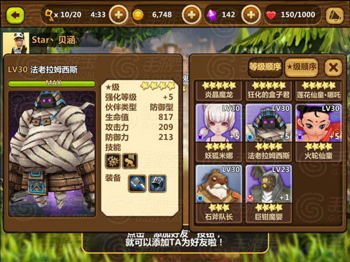 下面看他们不同的三个英雄,NO:1的圣殿蕾娜的两个技能都有附加效果,减攻速和减攻击,同时她非常肉,冲在前排比较耐打。NO:2的伙伴是防御伙伴法老拉姆西斯,比较冷门,但是血量非常多,且技能也有减攻速的效果。NO3的伙伴是普蕾奥莉,群控加AOE的技能,用过的人都说好。