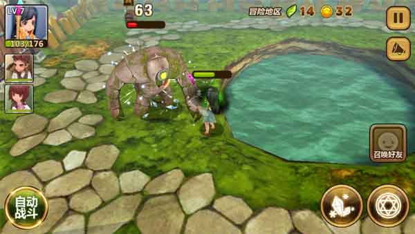 十五关和十四关又是一个大跨度,前面两个图糖老鸭作为远程攻击且技能带有减速效果,十分耗血,等到关底时主力小伙伴已经是残血,而另外两个小伙伴如果是一星克劳德和二星贝尔娜的话就会闯关失败。所以在此之前需要强化主力小伙伴,根据实际情况尽可能的强化主力小伙伴,然后将防御最高和攻击最高的装备为主力小伙伴换上。然后就可以进入关卡啦。战斗过程称中要注意,在糖老鸭吐水压之前就冲过去或者冰冻住(一般新手主力三星小伙伴都带有这样的技能),这样可以减少血量的消耗。关底叉八怪两个技能分别是冲锋和眩晕伤害,对于这种控制比较强的怪兽,我们更要先发制人,不过经过强化和装备改良之后,它的实际伤害还是可以扛住的,建议不要使用自动战斗,自己手动去躲避怪兽的技能,然后制服它。
