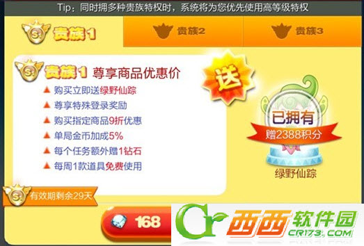 贵族3是要用RMB购买的,究竟是充值还是能用钻石购买我们还不得而知。贵族一次购买并不是永久的,而是按30天来计算。