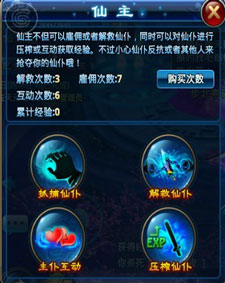 3) 主仆互动:选择你所拥有的仙仆对其进行不同形式的安抚或折磨,获得丰厚经验奖励。主仆互动每20分钟可以进行一次。
