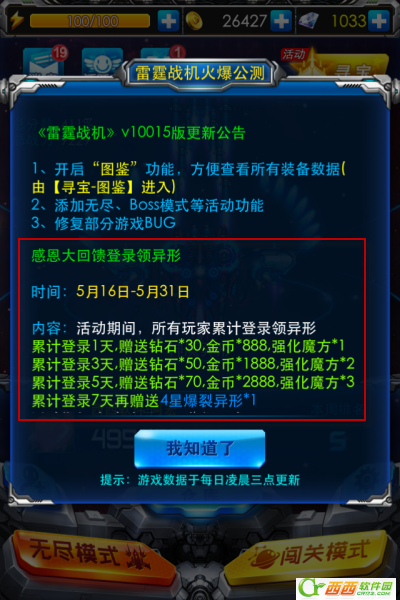 为庆祝雷霆战机5月中新版本上线,雷霆战机推出系列活动回馈玩家:
