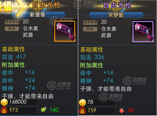 武器来看看暴击 ,一般的是9点 提升才1点 但是极品的话 ,提升3点 这个就很厉害了,攻击极品的是提升了8点, 橙装的话这个差距会更明显。