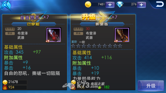 橙装与紫装的区别,橙装起步高,基础属性、附加属性、星级属性的项+1,也就是说,随着升级、升星、强化,+1项的积累也会越来越明显,相信在后期,橙装与紫装的差别就会显而易见。