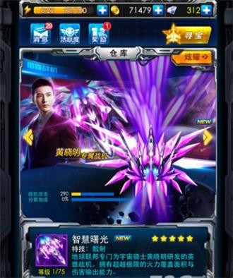 首先我们分析下五星战机智慧曙光,黄晓明专属战机,造型酷炫,它属于横向最强攻击力 当敌机只有一行的时候曙光的攻击力和效率是最高的