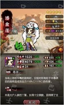 其实这种英雄属性和我国的功夫有很大的相似之处,所谓相生,搭配起来肯定威力大增,而相克就必然一死一伤了,比如高廉的技能“蛇蝎之毒”,而潘金莲的技能是“毒杀”,如果他们组合,只要高廉放毒成功,潘金莲就能对敌将造成极大的伤害。