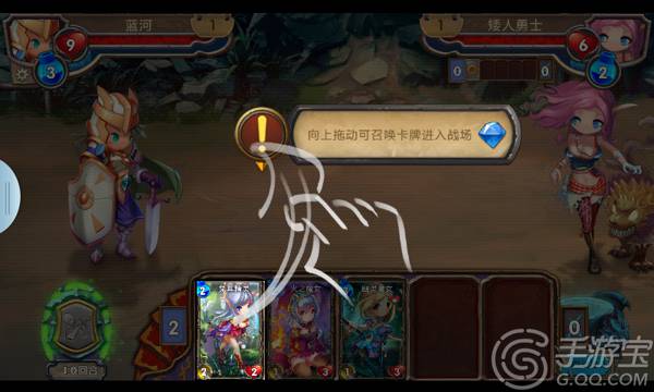 在进入战斗之前,首先要在编卡界面里为英雄组建卡牌军团。按住卡牌可以直接将其提起放到旁边需要的军团中组成卡组。进入战斗后,每回合会随机翻出玩家卡组中的卡牌。直接点击卡牌就能将其提起,生物卡在有足够召唤的魔力时可以直接放在场上,生物卡会自动攻击敌人,回复型生物卡能够回复场上其他卡牌血量。装备卡需要放在玩家英雄身上,技能卡则根据释放对象的不同需要放在不同的敌方。玩家提起卡牌后,符合释放规则的就会显示绿色箭头,不符合的会显示红色箭头,注意根据卡牌作用进行调整。
