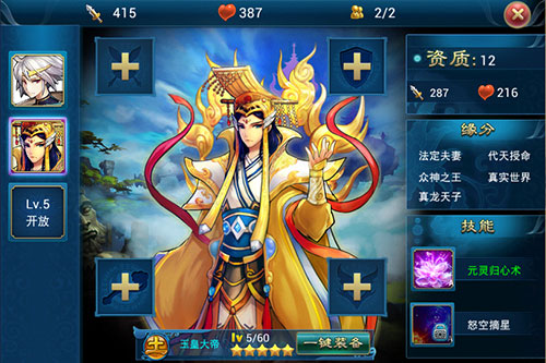 经典封神榜、西游记、聊斋等上古神话,民间传说。特别的“缘分组合技”让游戏卡牌之间的搭配更有趣。了解中国神话故事的人物传说,了解他们之间的古老秘史,俗话说的好:“关系越复杂,肯定越牛比”。
