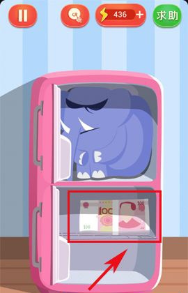 第2关也说不上什么通关技巧,小编试了N次,无论你怎么开,先开冰箱上层还是下层,先出来的都是大象,所以唯一的办法就是把冰箱都打开就能看到钱了。