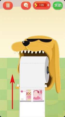 第六关可能会让很多玩家很坑爹,厕纸一直往下拉都是找不到钱,其实是个误区。钱是在厕纸上,但大家只需要将纸巾往上拨动就能看到钱了,是不是很坑爹啊?