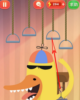 第三关重点在于要先找到“秤砣”,大家可以先尝试下拉吊环,秤砣会在你拉的任意一个吊环上。等找到秤砣后把秤砣挂在第3个吊环上,就能拿到钱了。