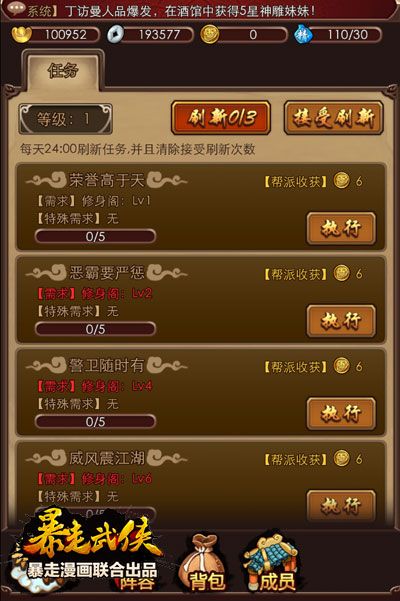 暴走漫画联合出品《暴走武侠》,iOS新版本即将上线!绝代弟子重出江湖,帮派玩法全面开放!更有全民期待的月卡系统天天豪送80元宝!《暴走武侠》携新版带来最暴走内容,最震撼福利!