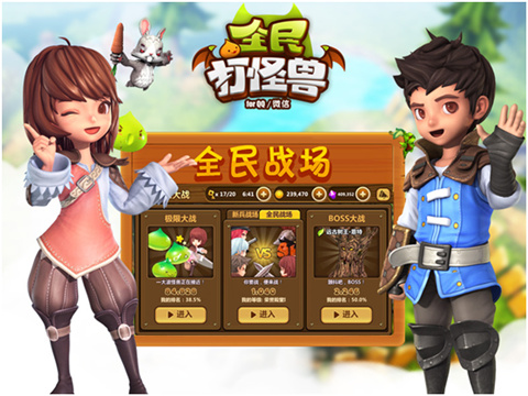 “全民战场”可谓是“新兵战场”的升级版,且没有星级限制,全服玩家皆可在全民战场中匹配到与你战斗得分相近的对手。这更加考验玩家的战斗能力与出战策略安排,必将兴起又一阵收集培养五星小伙伴的热潮!而强力PK玩家将有机会登上荣耀殿堂段位,前1000名小伙伴们更可获得全服展示的殊荣。全民战场打造《全民打怪兽》全民PK时代新纪元,小伙伴赶紧努力历练,和别的玩家一决高下吧!