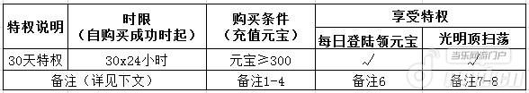 1、购买月卡的玩家在30天内可以享受光明顶扫荡功能