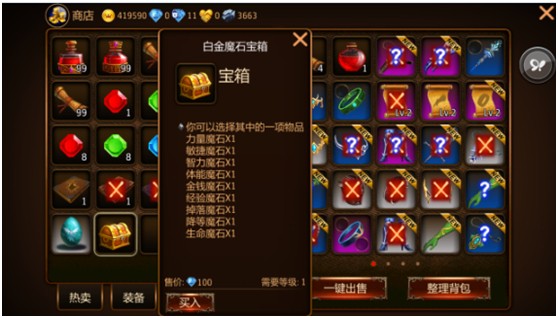 在合成装备时,在合成道具中放入一颗指定属性魔石(商城中道具白金魔石宝箱)合成出的装备即可鉴定后即可获得指定魔石的属性,举例:在合成时放入一颗力量魔石,合成的装备必定会鉴定出力量属性,其他属性还是看运气随机的,每次合成装备最多可放入一种属性魔石。有了这种属性石,我们就不必再反反复复的合成装备了,一石搞定哟。