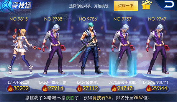温馨提示:未上榜的友友,到了一定的战斗力,可以大胆去挑战,看技能的顺序与方式如何,2000内战斗力差距是可以逆袭的。