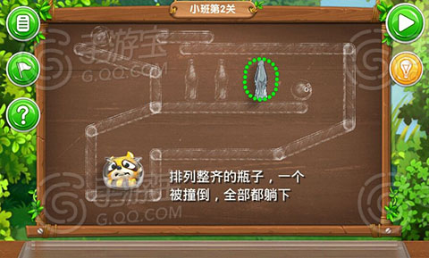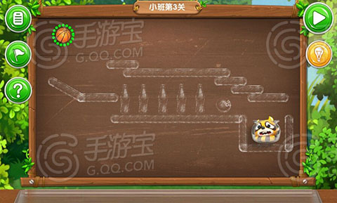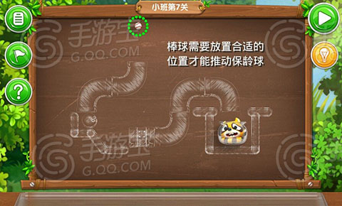 此关算小班关卡中难度最高的一关了,两旁水管的阻碍经常挡住保龄球的去路,棒球不宜放置过高,找准位置多试几次,总能够成功的。