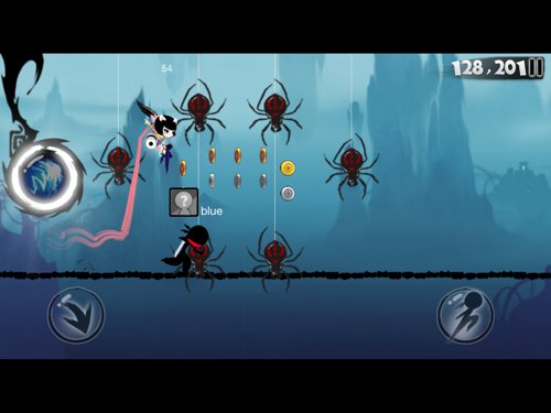 要成功避开致命飞矛,首先要冷静观察狙击目标的数量,然后会狙击目标进行引诱“空中下翻”的动作。“空中下翻”就是在狙击锁定忍者之前,进行二段跳甚至三段跳,狙击目标会跟着忍者上移,在狙击目标都锁定在绳索上方后,忍者迅速在最高点下翻到绳子下进行倒挂奔跑,这就能成功引诱狙击,潇洒躲开飞矛追杀。