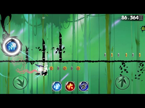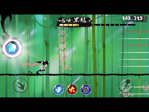 面对竹子的突袭,多采用的是倒挂和正常跑法的上下切换。但当忍者的奔跑速度不断提升时,会出现竹林,竹子密而且数量多,忍者无法单纯通过上下躲避,必须腾空才能逃过一劫。这样的竹林通常出现在召唤黑龙后,当竹子出现的位置小于角色一个身位时,意味着竹林将要出现,细心观察不难作出闪躲反应。小师妹的三段条和悟空的腾云驾雾在这种程度的攻击下就体现出优势。