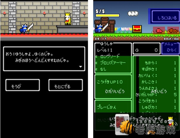 打倒敌人后即可提升等级,赚取金币收集装备,从而不断向前迈进。玩家只需忙里偷得几分闲,即可轻轻松松帮助角色升级,非常有趣。游戏开始后,玩家只需命令国王“向右不断前进”即可。持续点击屏幕右半部分的任意位置,即可不断前进。同样点击屏幕左半部分则会向后退。当国王前进只最右边的时候,画面就会切换到下一个关卡。