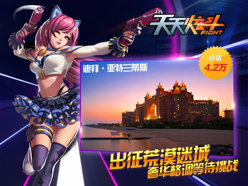 【天天炫斗】时尚都市奢华游第四期的目的地是享誉奢华格调的迪拜·亚特兰蒂斯,凡是在5月24日-5月30日期间通关洲际公路副本的玩家,都有机会获得这独一无二的私人订制版迪拜6天4夜奢华游。赶快一起参与到荒漠迷城的副本战斗中吧,也许下一个幸运儿就是你。