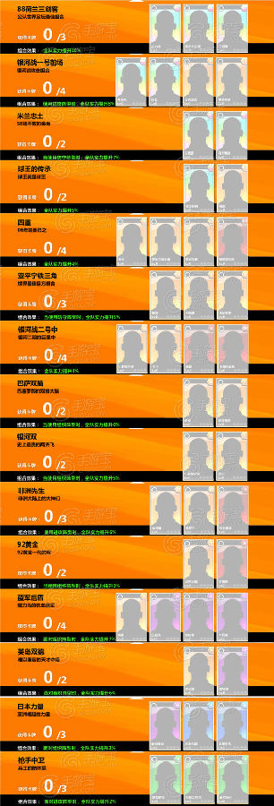 不同的组合需要不同的球员来搭配,同时激活的组合效果也是不同的。例如有些组合(银河战一号前场)效果是要在相应(进攻)阵型的前提下才能激活出效果。每一组组合都有着特殊的解释。值得一提的是,组合意味着得把这个卡组给填满,在球员组合中,有的组合只需要2张牌,有的组合则需要4张卡牌。如果需要4张卡牌的组合玩家们只集其1-3张是没有组合效果的,必须全部集齐才能发挥出组合效果。