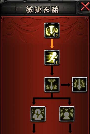 由于当前版本下敏捷英雄还是稍微强于其他两系英雄的,小编先点的是敏捷英雄的天赋。至少从这两个技能来看,大致情况是这样的:
