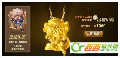 黄金小帅目前定价为1060RMB,是千足金吊坠饰品,重量约1.47克。黄金小帅的购买开放时间为6月4日~6月20日,是土豪送妹纸,屌丝送女神的首选礼品!