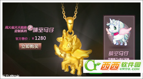 除了黄金小帅外,此次合作还推出了可爱萌宠晴空马仔,售价为1280RMB,同样是千足金吊坠饰品,重量约1.91。