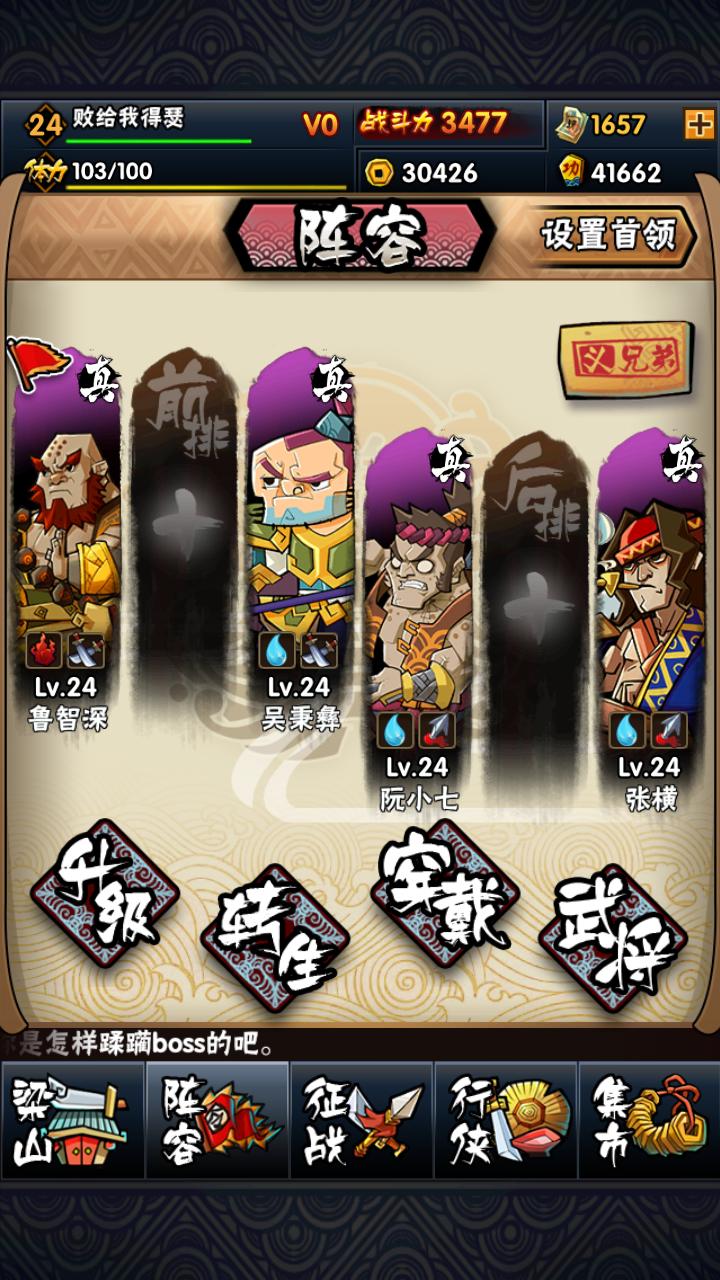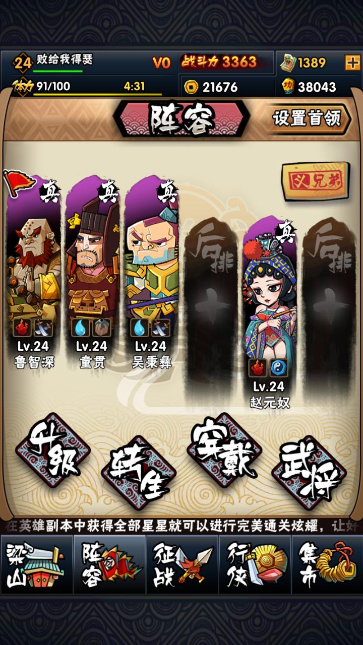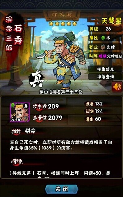***今天试验证明,后排放2个战将果断不行,几轮下来,石秀已经残血了!最后还是闯关失败。看图!