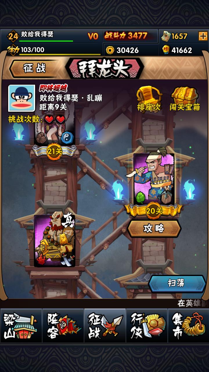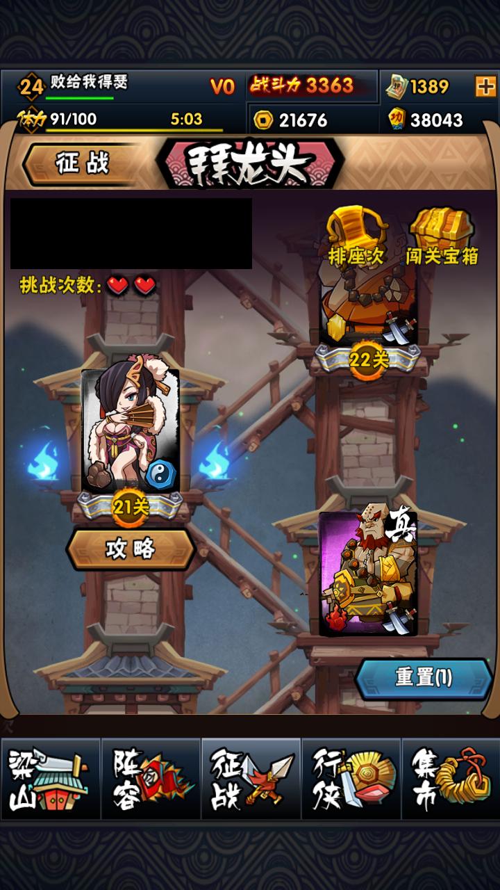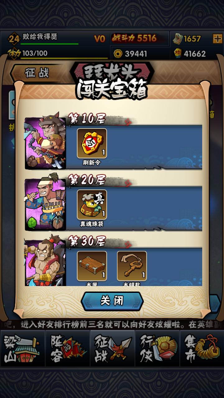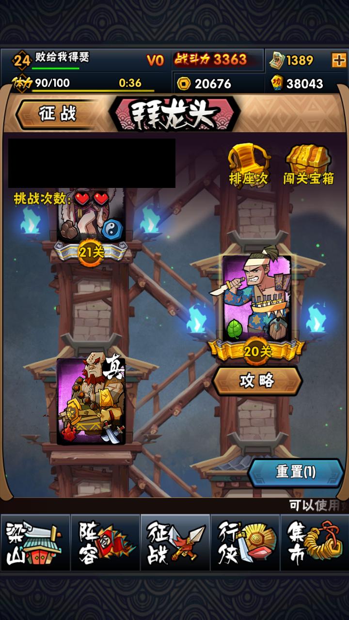 今天继续给新手玩家说说拜龙头·闯天关·排座次的一些知识,每天都有2次挑战次数(2颗心),还有2次重置机会!这2次重置机会很宝贵。当你发现今天怎么都通不了下层塔,2颗心都用完的时候,例如21层上22层塔,果断放弃,不要花10银票购买一剂生血丸起身再战!然后立即点重置,“重置”按钮就会变成“扫荡”按钮,点击扫荡,系统自动刷塔至你目前层数(举例所说21层),并给你第10层和第20层的闯关宝箱(刷新令,真魂珠)。附上闯关宝箱奖励图!