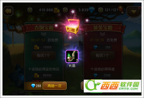 不一定是以往攻略所说的每天前三次金币单抽以后都不出好东西第四次就钻石抽,而且期间不能做任何事。但小编并不是这样做的,我都先将免费5次金币宝箱抽完,想抽英雄了,就开始一直单抽金币宝箱直至出的白色装备,然后马上点钻石单抽,这个单抽金币宝箱与紧接的钻石抽应该是连续的。