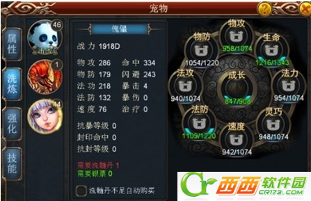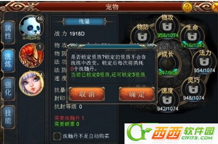 4、宠物洗炼会随机的改变宠物的初始所携带的技能。