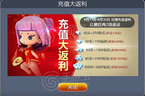 活动内容:封测充值返利!公测后再双倍返还(充值+返利均双倍)