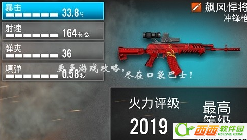 属性明细:暴击33.8%;射速164转数;弹夹36;填弹0.58秒