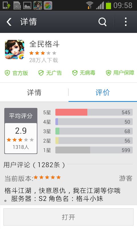 3、选中《全民格斗》,并在《全民格斗》下载页点击评价。