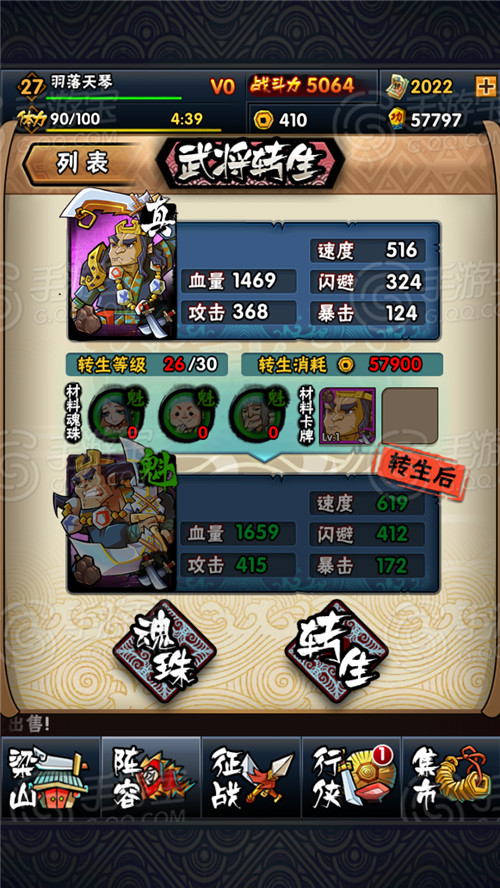上述是通过基础的方式来增加自己阵容实力,那么怎样来增强武将的实力呢?最为重要的两个方式武将转生和装备的穿戴了。