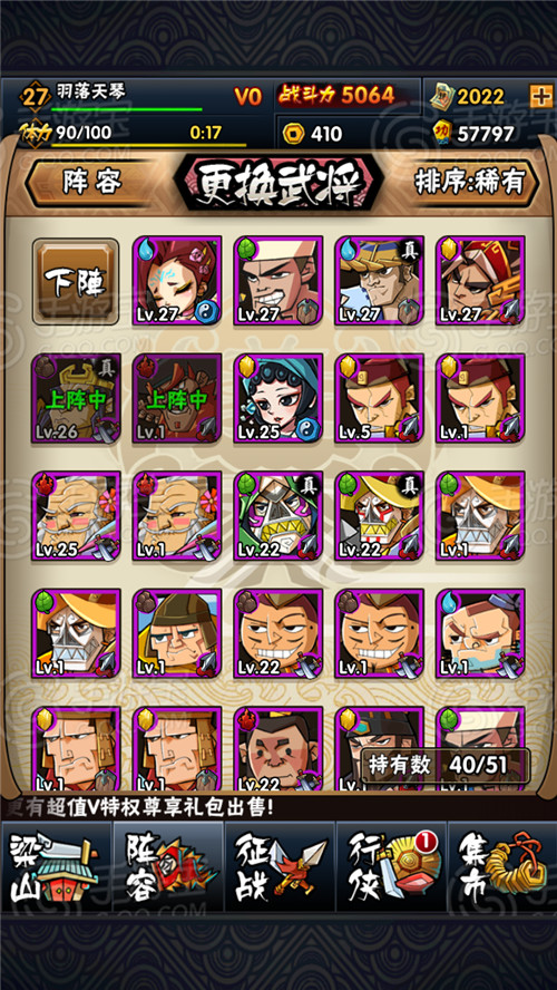 在游戏的前期,大家都只能是屌丝阵容,阵形难以搭配,就更别说什么情缘了,根据稀有度来让武将上场,大家尽可能按常理出门就好了。等大家玩熟悉之后,拥有了自己的卡牌之后,就要开始琢磨游戏系统是怎样来定夺卡牌的实力了。