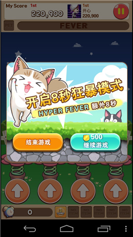 这一局可以尝试下8秒额外疯狂模式哦,小猫咪快速跳跃弹起,那场景还是非常的Q的。喜欢的就话,就来尝试一下吧!