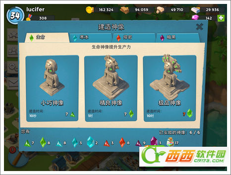 -降低雕像建造时间,小巧10秒,精良1小时,极品10小时。