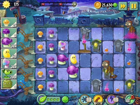 不消费阳光的喷气菇(Puff Shroom)可以说是每一关起手的最好选择,可以粉碎墓碑和近距离攻击,当然你也可以选择杀伤力更强的毒气菇。另外有不少玩家反映,在游戏的后期植物被吃掉的概率很大,阳光的补给跟不上,为此开发商在游戏中加入了一种名为阳光豆(Sun Bean)的植物,僵尸吃掉之后会一路洒落阳光,帮助玩家快速重建防御工事。要说本次更新最强悍的植物那就是催眠菇了(Hypnoshroom),它可以将一名僵尸转化为为你而战的植物士兵。